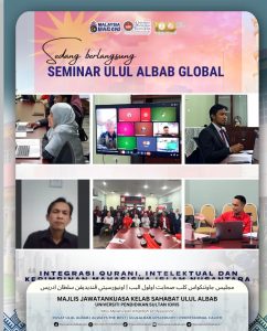 Seminar Ulul Albab Global Yang bertemakan ”Integrasi Qurani, Intelektual dan Kepemimpinan Mahasiswa Islam Nusantara” diisi oleh pemateri yang luar biasa, antara lain; Dr. Sakinah Salleh (pengarah Pusat Ulul Albab UPSI Malaysia). Dr. Samsuddin Abd. Hamid (Pusat Ulul Albab UPSI Malaysia), Dr. Tajul Rosli Bin Shuib (Pusat Ulul Albab UPSI Malaysia), M. Hoerudin Amin, S.Ag.,